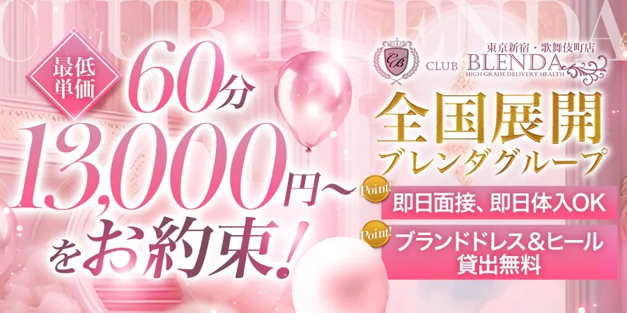 仕事内容 「敷居が高そう」 「わたしでも働けるか心配」 と心配な方はご安心を! 当店には未経験スタートが多数! 働きやすさを重視したお仕事環境 ✓スタッフが同行 はじめてご利用されるお客様はスタッフが同行し安全確認 ✓体験入店 入店が不安な方はまずは体験から ✓貸衣装あり ドレスやヒールを貸し出し!手ぶらでお仕事スタート ✓講習なし マニュアル説明のみで実技講習は一切なし! ✓即日日払い お給料はお仕事したその日に全額支給 ✓罰金ノルマなし 遅刻や欠勤に対するペナルティは一切なし 当店は、プレイのテクニックよりも会話を重視するお客様が多く ✓一緒に食事を楽しみたいお客様 ✓会話を楽しみたいお客様 など、ゆったりとした時間を使い遊ばれるので体への負担が少ないのが特徴的 「話を聞いてみようかな?」 と思ったら、お問い合わせください 勤務地 新宿 給与 【インペリアRANK】 60分 18,000円 90分 24,000円 120分 31,000円 【エキスパートRANK】 60分 15,000円 90分 21,000円 120分 27,000円 【エントリーRANK】 60分 13,000円 90分 18,000円 120分 23,000円 \お給料例/ 【インペリアRANK】 8時間勤務 日給 126,200円 【エキスパートRANK】 7時間勤務 日給 96,000円 【エントリーRANK】 5時間勤務 日給 64,500円 雇用形態 個人事業主 勤務時間 営業時間:9時~翌6時まで営業 出勤/面接/体験入店にいつでも対応しています 年齢・資格 年齢:18歳~30代 経験・未経験関係なく募集 休日・休暇 【自由出勤制】で空いた時間にいつでも働ける! 週1回/月1回/当日出勤/いつでもお仕事OK 待遇 ◆待遇の良さを実感◆ 【自由出勤】 月1回~の出勤でもOK! 【無料送迎】 時間や天候・身バレが気にならない 【専属スタイリスト】 サロンに行く手間を省きセットが可能 【撮影スタジオ完備】 いつでも無料で撮影可能! 【身バレ対策】 ・顔出し強制なし ・写メ日記の強制なし ・派遣先のエリアNG指定 ・知り合いの連絡先事前NG可能 ・ダミー出勤可能 ・アリバイ対策 ・身バレ対策アドバイス 衛生対策も含め、ブレンダ新宿は万全の体制で女の子をお迎え 最高の環境・最高の稼ぎをお約束! メッセージ エリアトップクラスの集客力で稼ぎやすい環境を構築 衛生対策も含め、ブレンダ新宿は万全の体制で女の子をお迎えします 《いますぐ体験入店可能》 「自分でも働けるのか」 「お仕事に自信がない」 方でも安心していただけるよう、体験入店を実施中! お仕事選びで迷ったら、最高の環境・最高の稼ぎを提供しているブレンダ新宿へ