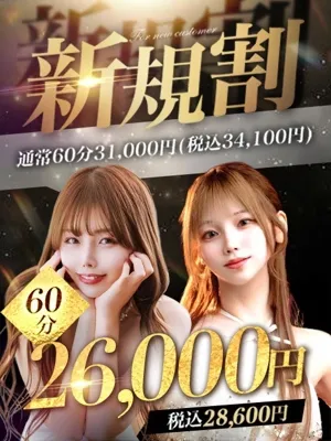 | 5,500円OFF! 新規割 60分 | 34,100円 | 28,600円 | ~当店のご利用が初めてのお客様限定~※お電話の際『新規割見た!』とお伝え下さい。 |